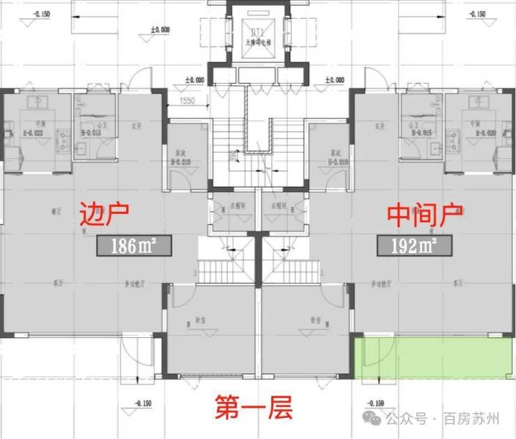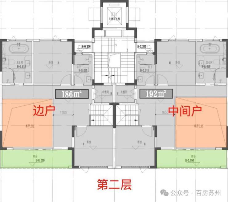 下叠有边户约186℃,中间户约192℃(四房两厅三卫):10米左右南向面宽+南北双庭院,一层都配有老人房,还配有地下室;二层拥有较大的挑空空间,整体得房率约88%。